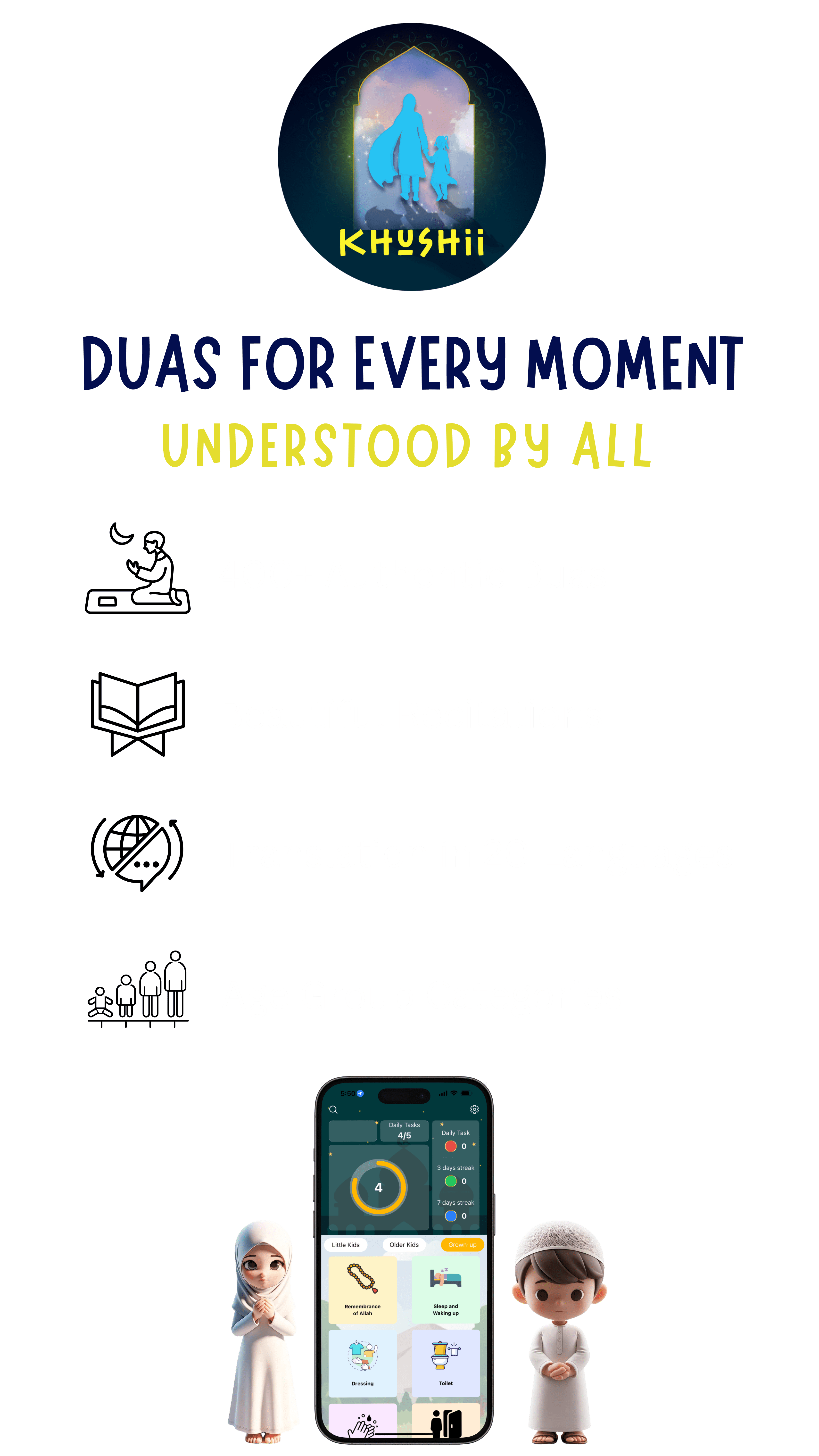 Khushii Dua is designed to engage every family member, from toddlers to grown-ups. The app includes different levels, so young children can learn alongside older siblings and parents. It’s more than an app—it’s a shared experience that helps your family grow in faith together.